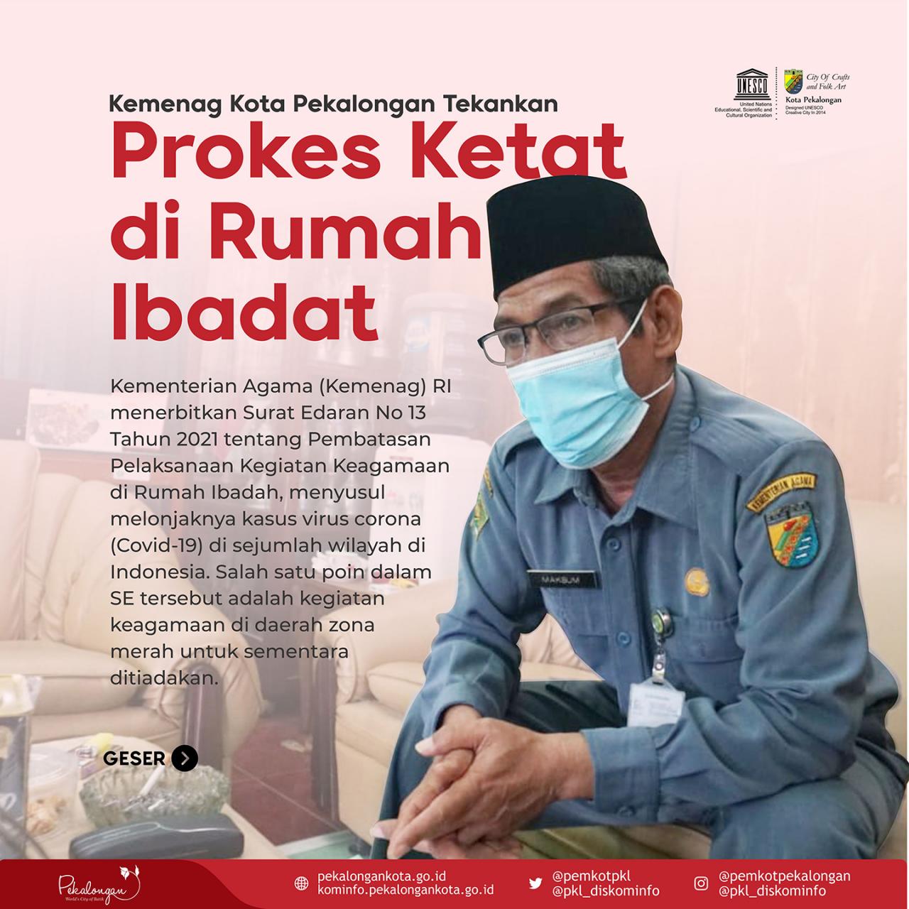 BERITA KOTA Kemenag Kota Pekalongan Tekankan Prokes Ketat di Rumah Ibadat TIM KOMUNIKASI PUBLIK 17 Juni 2021 [15:09:44]