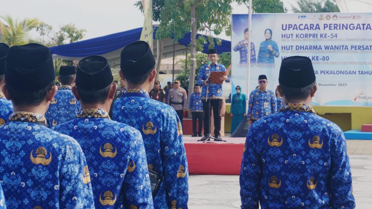 Kota Pekalongan – Pemerintah Kota Pekalongan menggelar Upacara Peringatan Hari Ulang Tahun (HUT) Korps Pegawai Republik Indonesia (KORPRI) ke-54 Tahun 2025 di kawasan Taman Wisata Laut (TWL) Pantai Pasir Kencana, Selasa (02/12/2025). Meski pelaksanaannya sempat tertunda dari peringatan nasional yang jatuh pada 29 November, kegiatan puncak tetap berlangsung khidmat dan penuh semangat.